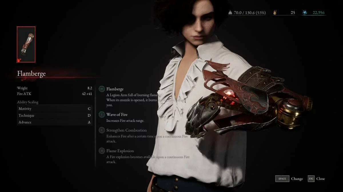 Фламберг – огнемет Lies of P. Его можно создать при помощи ремесленного станка Вениньи в отеле «Крат» после того, как вы одолеете босса Фуоко, Пламя Короля. Три усовершенствования – Волна огня (повышает дальность атаки), Усиленное горение (увеличивает мощь атаки) и Взрыв пламени (позволяет создать огненный взрыв при непрерывной атаке пламенем).