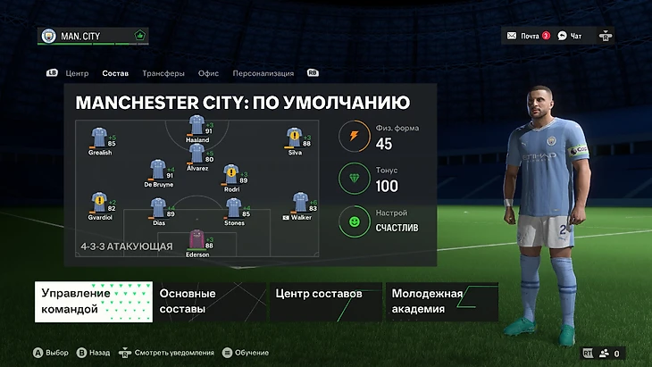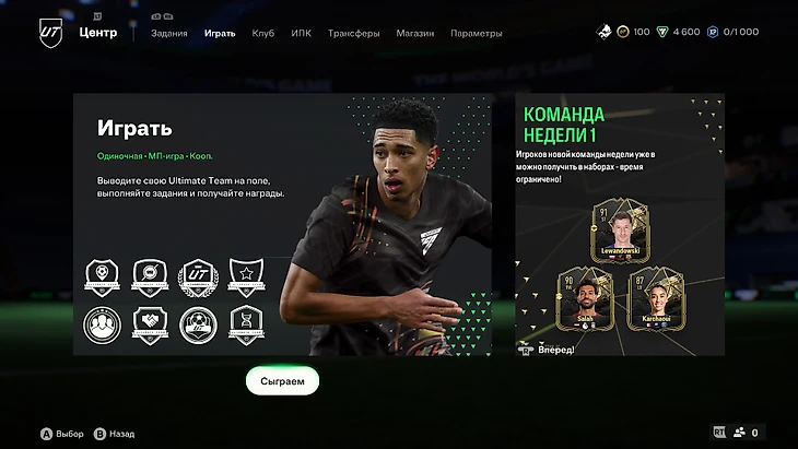 После ребрендинга EA сильно изменила меню. Оно минималистичное и напоминает старые части, но первое время очень непривычное. Где-то стало хуже: в составах Ultimate Team изменили кнопку доступа к схемам и тактике, а функциональность трансферов испортили – теперь собираем ИПК только в веб-приложении. Два параллельных меню (обычное и через левый триггер) я тоже не понял.