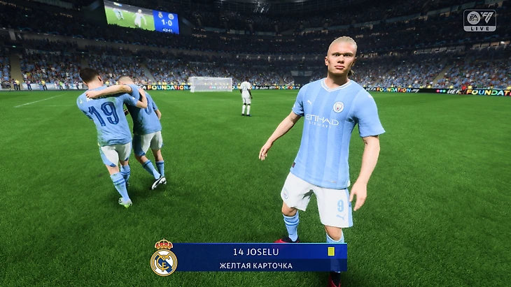 За графику футсим можно только похвалить. Картинка FC 24 стала насыщеннее, а живое поведение футболок еще немного приблизило игру к реальному футболу. Раньше игроки часто сравнивали визуал FIFA и PES, но некстен-графика FC 24 в отрыве от eFootball 2024 на несколько световых лет, а на многих важных ракурсах не отличается от дорогих AAA-игр.