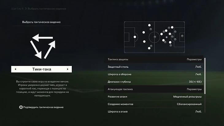 В карьере появилось тактическое видение менеджера. В распоряжении игрока семь стратегий: стандартная, игра по флангам, тики-така, контрпрессинг, автобус, контратака и бей-беги. Например, Пеп Гвардиола в «Ман Сити» исповедует тики-таку.