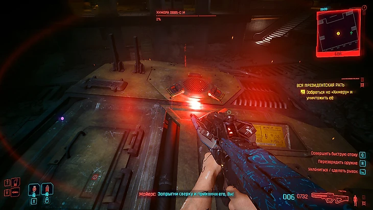 Во второй фазе танк выпускает лазер и ядовитый газ, от которых можно спрятаться на втором этаже – не игнорируйте эти атаки, они наносят колоссальное количество урона. Там же по углам расставлены тяжелые пулеметы, которые можно взять для облегчения сражения. Когда у «Химеры» останется 2% здоровья, Майерс скомандует залезть наверх – предварительно подлечитесь, чтобы атака танка не сбила вас с ног и не раздавила.