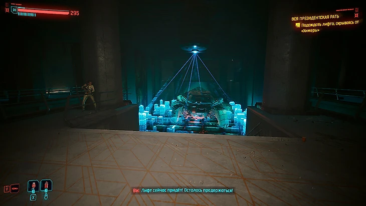 Далее все пойдет не по плану, и «Химера» восстанет против вас с Майерс. Бегите к лифту и спрячьтесь за колоннами, пока ждете его, чтобы избежать разрушительной атаки.