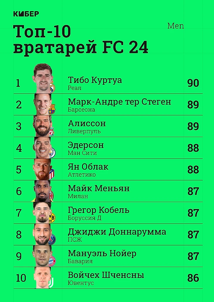 Лучшие вратари FC 24. Куртуа – король игры, но тер Стеген и Алиссон близко