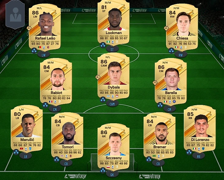 Лучший на левом фланге – Рафаэл Леау. Вингер «Милана» получил высокую скорость и немного надежнее, чем Хвича Кварацхелия из «Наполи». Справа поставили Федерико Кьезу из «Ювентуса». Также неплох Доменико Берарди с «Охотником».