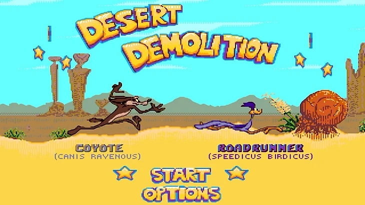 Desert Demolition. Бедолага-койот из Looney Tunes преследует быструю птичку-бегуна. Такая короткая, но очень забавная, со своими приколами. Проходить уровни нужно на время. С возрастом мне стало жаль койота, он вечно проигрывает и страдает.