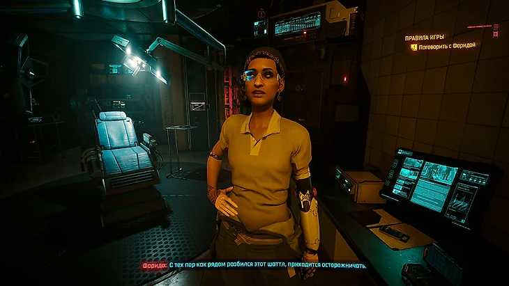 Можете пересказать Риду о том, что сказала Сойка, или не раскрывать ее истинные мотивы. После этого рипер установит импланты, можно будет поговорить с Джонни и спросить, что он бы сделал на месте Ви. Тот тоже ничего не может посоветовать. На этом задание «Правила игры» завершится, начнется квест «Новая жизнь, старые грабли».
