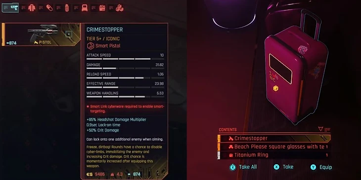 Как только вы попадете в комнату, облутайте багаж на полу, где вы найдете культовый умный пистолет The Crimestopper пятого тира. После этого зайдите в комнату к Джорджине. Во время разговора она выйдет из себя и попросит телохранителя Хэнка вышвырнуть вас.