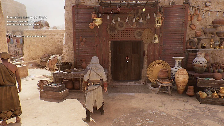 Сперва найдите контакт Нура в Багдаде. Воспользуйтесь орлом Энкиду для определения его точного местоположения. Выяснится, что он в мастерской красильщиков.