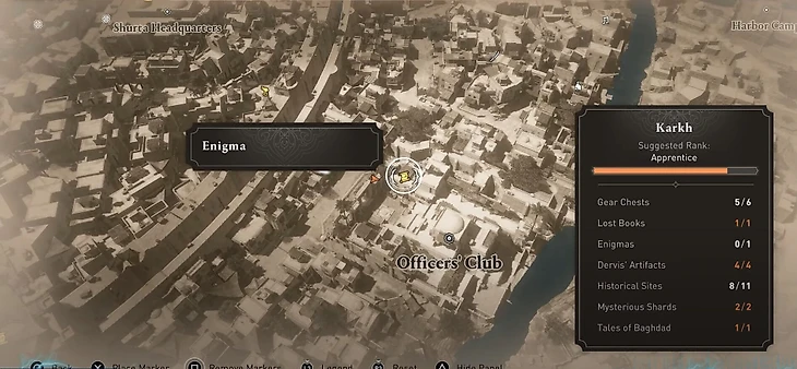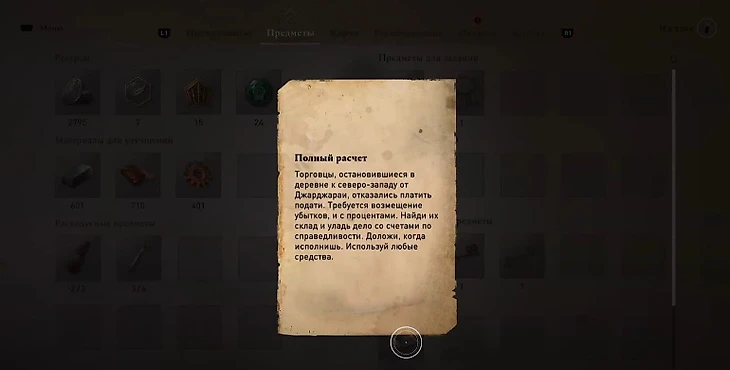 Загадки – небольшие головоломки, спрятанные по всей карте в Assassin’s Creed Mirage, всего их 12 штук. Проходя их, вы найдете краски для определенной одежды или талисманы. Чтобы пройти загадку «Полный расчет» вам потребуется уйти глубоко в пустыню – лучше заранее найти скакуна, поскольку бег займет слишком много времени. Она находится в регионе Карх.