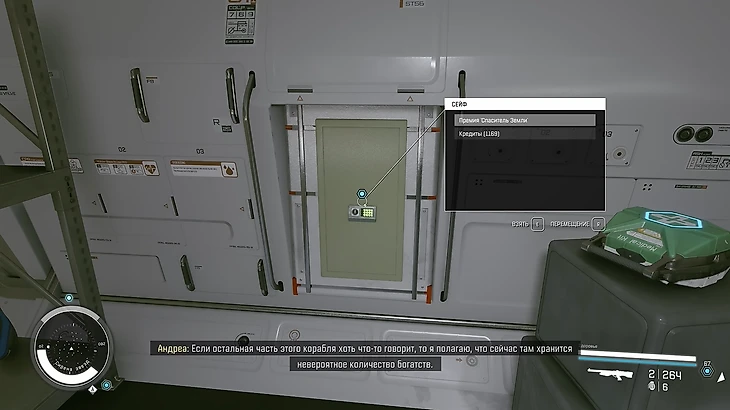 Оказавшись в грузовом отсеке судна, первым делом осмотрите комнаты в поисках ценностей, которые можно сбыть контрабандистам. Завершив «чистку», найдите пилота – Евгения Рокова – бывшего члена Багрового флота, который поможет вам в достижении поставленной цели.