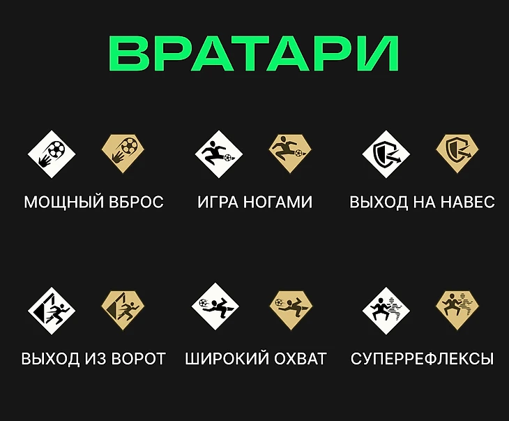 Вратарей обделили игровыми стилями. В UT нет ни одного стража ворот с золотым навыком, а из базовых к тому же исключили «Широкий охват» и «Суперрефлексы». Похоже, их сочли слишком читерными – тем самым разработчики косвенно подтвердили, что показатели прыжка и рефлексов у вратарей являются ключевыми.