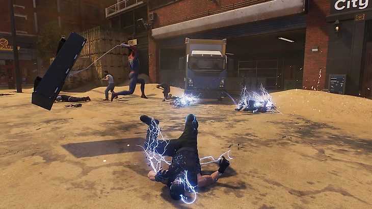 Чтобы проникнуться игрой, достаточно пройти вступление. Герои зависают в школе: Питер Паркер рассказывает ученикам о физике, а Майлз Моралес сидит за партой. И тут приходит он – Песочный человек, размером с небоскреб. Он рушит дома, превращает улицы в пустыню, призывает армию миньонов и не думает успокаиваться.
