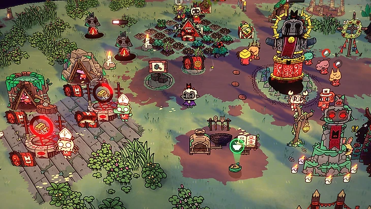 Отлично помогла справиться с грустью и напряжением игра Spiritfarer. Да и любая игра наподобие этой думаю, тоже бы справилась. Развиваешь свое поселение, ухаживаешь за жителями, помогаешь им, добываешь ресурсы и т.п. А в этом году вышла яркая, необычная игра Cult of the Lamb, где мы играем за одержимого ягнёнка и пытаемся построить свой культ. Порой я могу сильно увлечься такими залипательными игрулями и забросить основные игры, которые прохожу на данный момент.