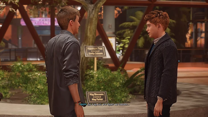 Внутри начинается кат-сцена. Гарри расскажет, что во время лечения слышал, как мама рассказывала ему, что мир нуждается в его помощи. Расстроганный Питер наконец-то соглашается присоединиться к другу и начать работу в Фонде Эмили-Мэй.