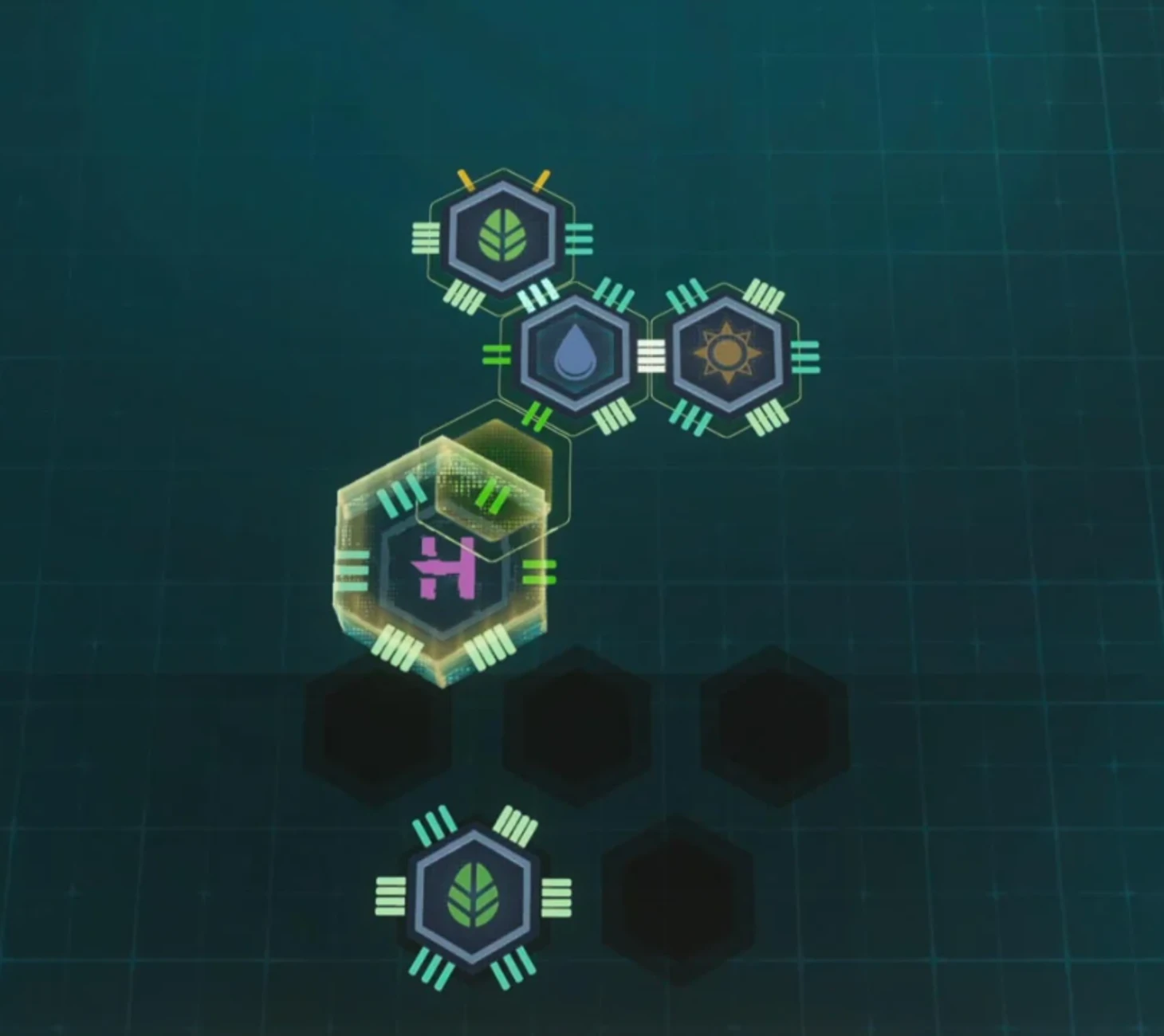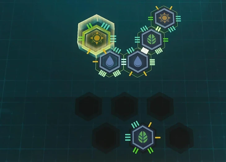 Третий этап похож на предыдущее, но вам нужно будет выбирать символы. Для решения задачи вам понадобятся следующие значки: один лист, одно солнце, одна вода. Самая простая конфигурация показана ниже: