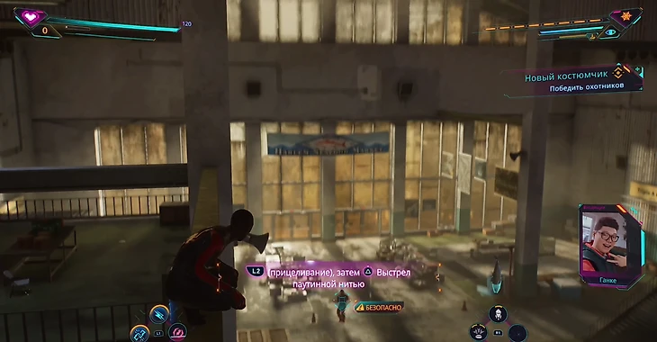После недолгой сцены, в ходе которой Паркер сообщит о буйствах Коннорса, вы переключитесь на Майлза. Пробравшись внутрь рынка, постарайтесь избавиться от наибольшего количества охотников в стелс-режиме, после чего нейтрализуйте оставшихся.