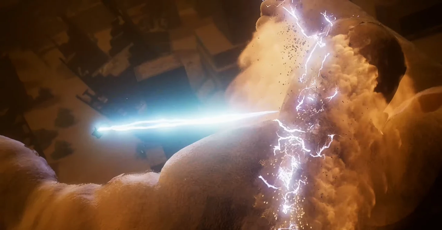 Разобравшись с песочными миньонами, вы автоматически переключитесь на Майлза и вступите в бой с Сэндменом. С помощью треугольника нанесите электрический удар.