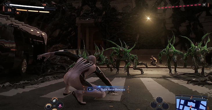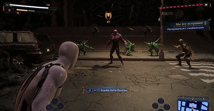 И буря Анти-Венома (L1 + X). Новый костюм позволит вам гораздо успешнее вести бои именно с симбиотами.