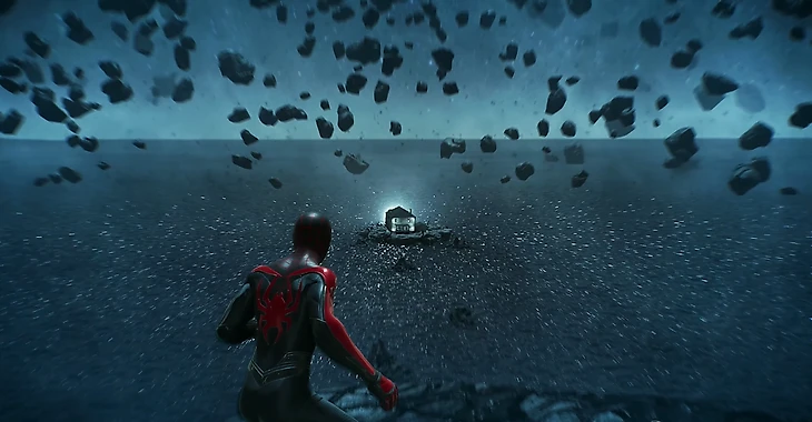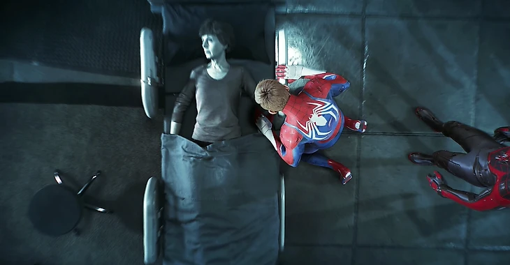 Майлз разбудит Питера, после чего тот укажет им с Мартином уходить. В этот момент управление переключится на Паркера, а вы сможете опробовать силы от нового костюма.
