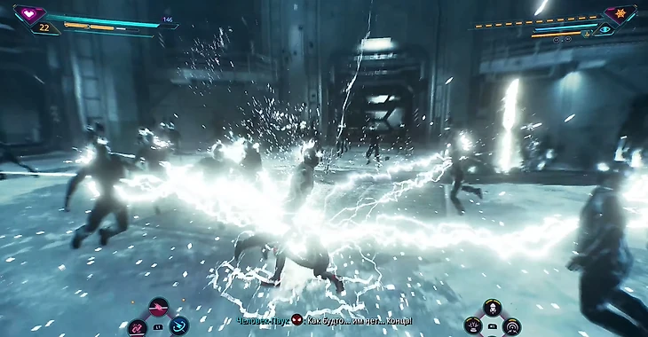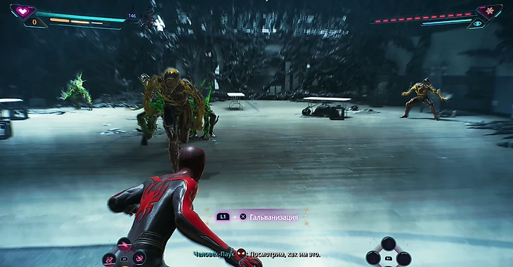 После яркой вспышки Моралеса отбрасывает назад, где появляются новые симбиоты, а у вас открывается новая способность – гальванизация.
