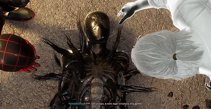 После этого бой прервет черный экран. Когда свет вернется, вы обнаружите все «тела» духов на земле, а Майлз скажет, что Веном убил их.