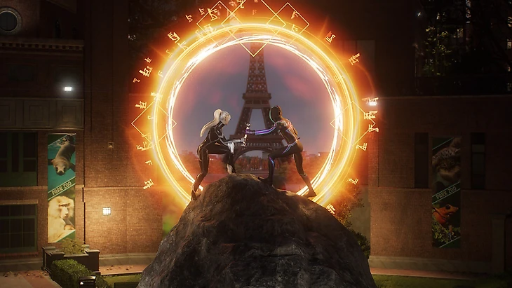 В это время Моралес спасает от охотников Черную кошку. Благодаря Пауку и волшебному посоху Стрэнджа, который открывает порталы, дама сбегает в Париж. Там она хочет спасти подругу.