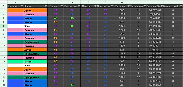 По итогу я собрал стату по разным ролям (дд, хил, танк) всех игроков сервера и отсортировал только тех, кто был бы нам интересен. На код я потратил примерно 2 дня, а сбор данных скриптом занял примерно 1 час фоновой работы.