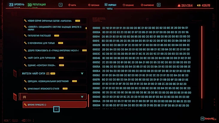 Откройте раздел «Журнал» в игровом меню, в нем выберите раздел «Чипы» и внизу списка найдите чип «Время пришло».