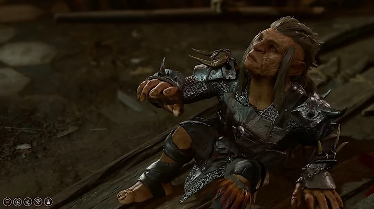 Слишком много пунктов начинаются с подзаголовка «Убийство», пора разбавить и другими противоречивыми поступками. В лагере гоблинов можно встретить Хрупа – чересчур хвастливого воителя, который считает, что ему нужно целовать ноги. Его можно переубедить запугиванием и заставить самого целовать ногу главного героя – это понравится Лаэ’зель, Гейлу, Карлах и Шэдоухарт.