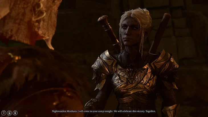 Ее можно будет встретить там, но уже в новой роли заключенной – ее приговорили к смерти за проваленную операцию по поиску артефакта. Во время пытки у Темного Соблазна появится особая строчка – он предложит стереть ее память. Разум Минтары соединится с разумом Соблазна, и она сама попросит убить ее, чтобы перестать слышать голоса в голове. Можно передумать и предложить ей план побега, после которого она станет компаньоном, но если довести дело до конца, Минтара станет безэмоциональным мешком с костями.
