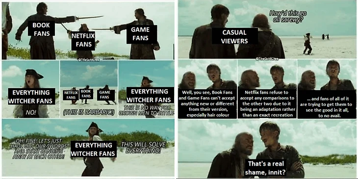 2. Новые сюжетные ветки откровенно слабы. Если бы новые решения были хорошие (а историю Сапковского можно было бы расширить, там есть белые пятна) вопросов бы не было. Но ярко на примере сериала-приквела мы видим, что создатели слабы примерно во всем. Те же СДПР в дополнениях к Гвинту лучше истории пишут. Уверен есть куча фанфиков при мир ведьмака с куда более хорошими решениями.