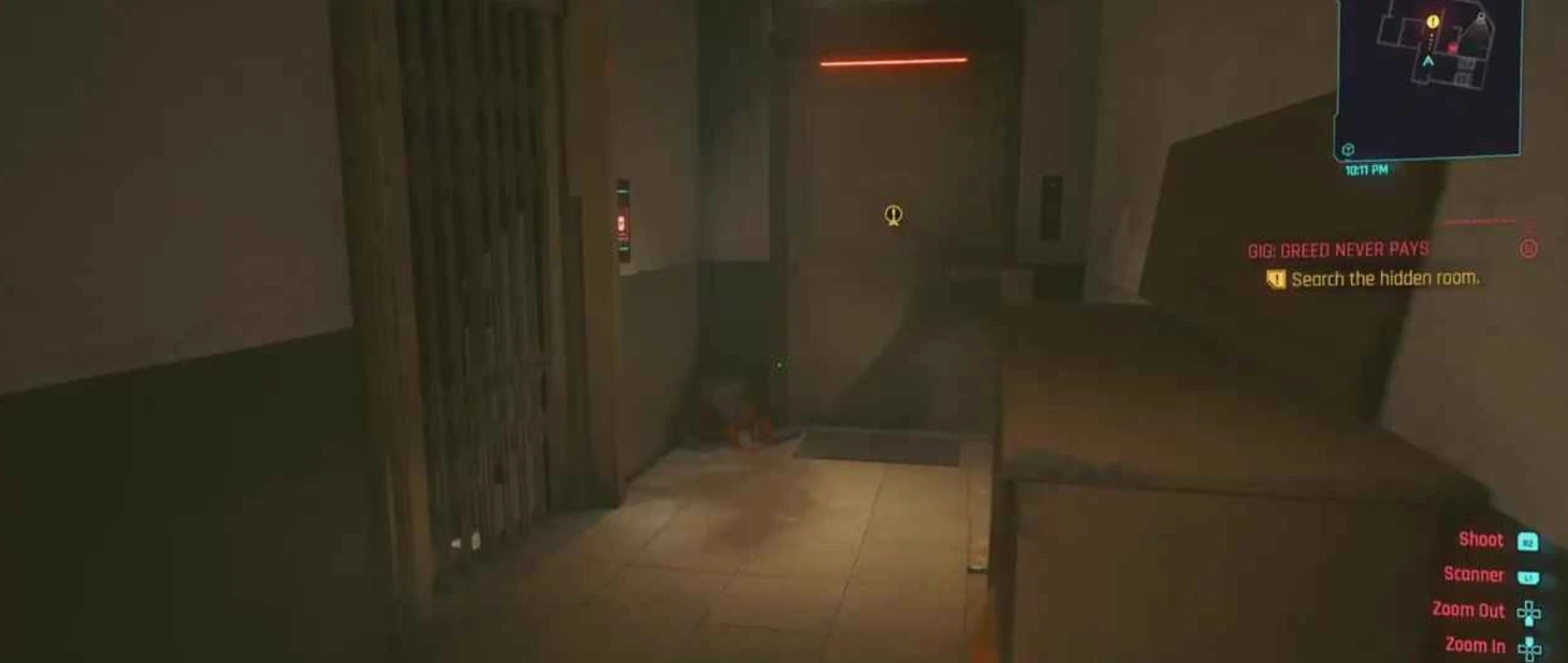 Либо вы можете провести взлом лифта в лобби, перезагрузить оптическую систему администратора и похитить карту доступа к квартире, лежащую на столе, либо подняться на верхний этаж и открыть дверь при наличии 5 очков в навыке «Техника».