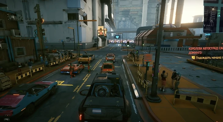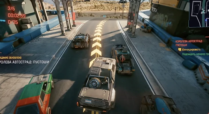 Вам напишет барменша из «Посмотри» Клэр Рассел и предложит встретится, потому что ей нужна помощь. Отправляйтесь в Санто-Доминго, к гаражу Клэр. Поговорите с девушкой, найти ее можно под большой машиной – она предложит вам поучаствовать в гонках в Найт-Сити. Нужно пройти три квалификационные гонки, а затем принять участие в финальном заезде.