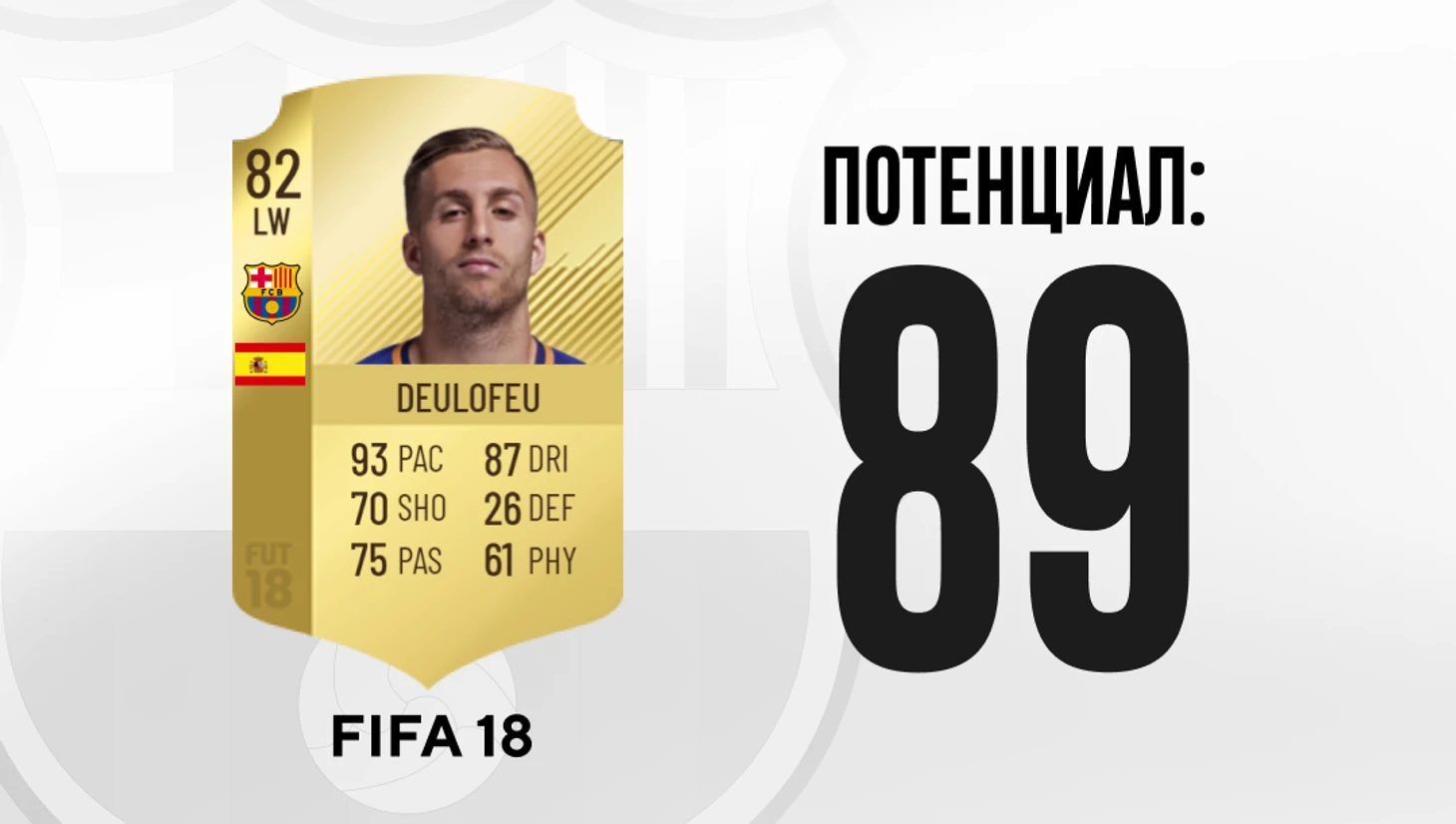 Жерар Деулофеу пробился в «блауграну» по нетипичному пути. Талантливый парень забил 18 голов за «Барсу Б» в сезоне-2012/13, но сразу отправился в путешествие по арендам, которое завершилось тихим трансфером в Англию. Молодой нападающий классно подыгрывал и отметился хорошими отрезками в «Эвертоне» и «Милане», поэтому «Барселона» вернула 23-летнего воспитанника, а EA даже нарисовала ему потенциал 89.
