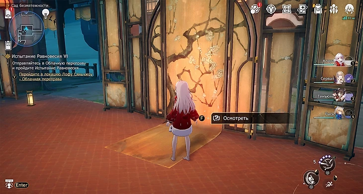 Саму актрису вы найдете в сажу безмятежности. Следуйте к отмеченной на карте точке, после чего подойдите к ширме и взаимодействуйте с ней.