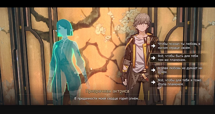 Призрачная актриса – певица на Лофу Сяньчжоу в Honkai: Star Rail. Вместе с ней вам предстоит разучить текст оперы, чтобы получить одно из достижение – «Лейся, песня» или «Ученик, последователь и адепт».