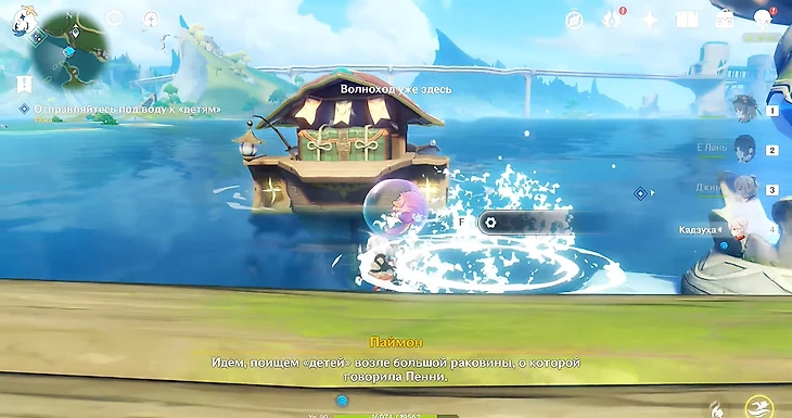 После короткого диалога на суше вновь прыгайте в воду, чтобы пройти мини-квест по вхождению в волны. Как только путь будет окончен, вы увидите кат-сцену, а миссия завершится.