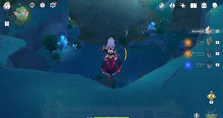 Справа от вас будет стоять Эрншоу. Если он не появился, отмотайте игровое время на двое суток, после чего телепортируйтесь подальше и вернитесь на место. Также можно перезайти в игру после перестановки времени. Начав диалог с мужчиной, вы узнаете, что Лануар была похищена хиличурлами.