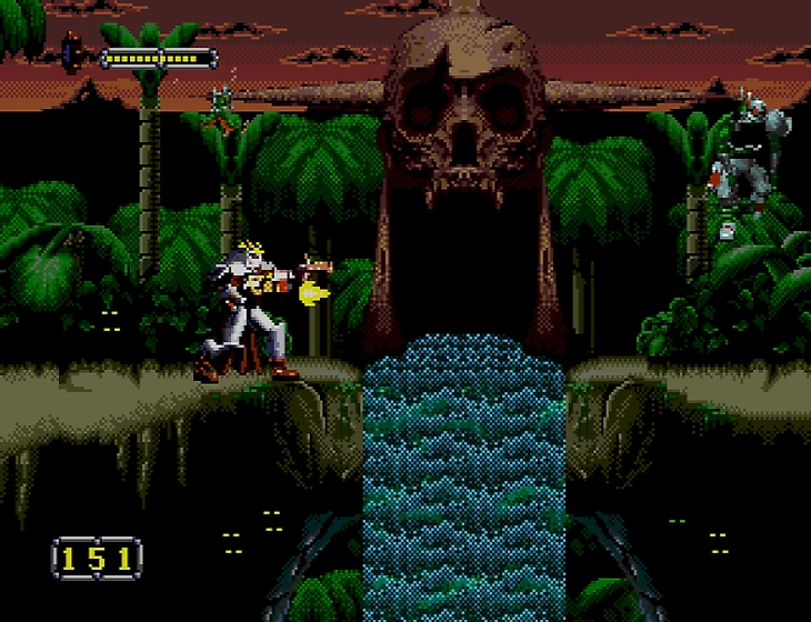 Всего здесь вам предстоит пройти 4 планеты: Венера, Меркурий, Плутон и Неро. На каждой планете 2 локации и плюс схватка с боссом. Кстати, в игре нет таймера, но вот битва с первым боссом (скелет Демногонис) ограничена по времени, так как если не успеете его быстро убить, то утонете в его кислотной блевоте 🤮