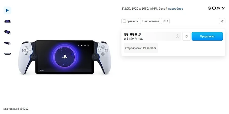 На сайте DNS открыт предзаказ на PlayStation Portal. Стоимость – 39 999 рублей. Старт продаж – 19 декабря.