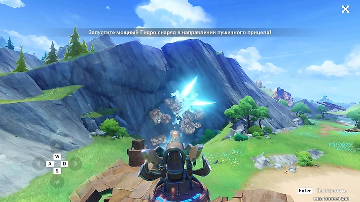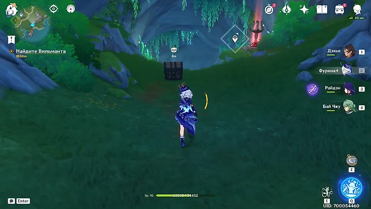 После этого проследуйте к месту удара. Там вас будет ждать сундук с 20 тысячами моры, новый телепорт и вход в пещеру.