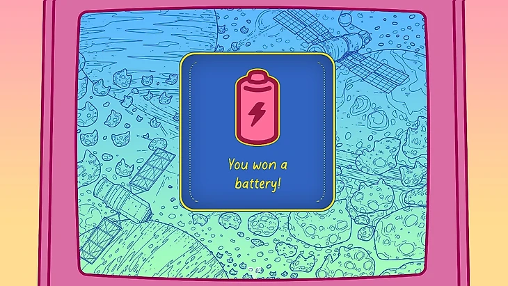 Используйте аппарат, на котором спит кот. В нем вам откроется мини-игра по сбору газет. Пройдя ее, вы получите вторую батарею.
