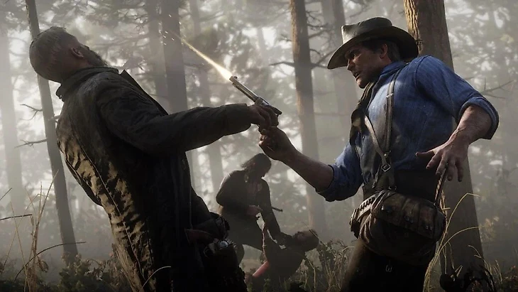 Пока в других играх мы занимаемся унылым отстрелом болванчиков, что прут напролом, RDR2 удивляет проработанным интеллектом всех вокруг. Люди спешат по делам и придерживаются внутриигрового расписания. Зайцы боятся выскакивать на дорогу и прячутся в подлеске. А враги умело обходят по флангам и не дают отсидеться в укрытии.