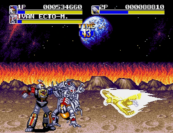 Зато схватки с некоторыми боссами происходят в виде зордов – огромных роботов. Боевая механика тут немного другая (появляются блоки, например), но в остальном тот же битэмап – комбо, захваты. Некоторые зорды значительно отличаются от других (например, Falconzord – ястреб).