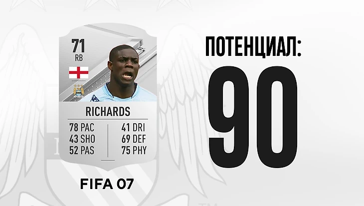 Майка Ричардс – еще один воспитанник клубной академии. В 2005-м он дебютировал за основу и почти сразу стал важным игроком старта. Правый защитник отличался феноменальными физическими данными, поэтому иногда выходил в центре защиты и подключался к атакам могучими рывками. В те годы потенциал англичанина в FIFA достигал элитных 90 баллов.