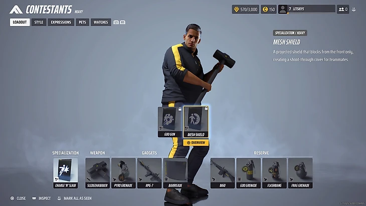 Нужен, чтобы врываться в охраняемые локации и защищать напарников от урона.