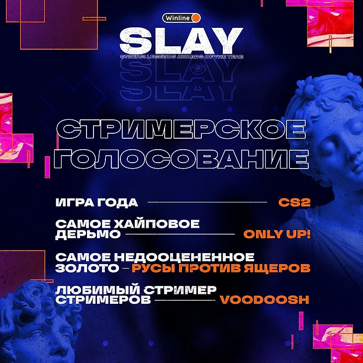 Премия SLAY – аналог «Оскара» и «Грэмми», только в стриминге. Она собирает русскоязычных топов индустрии вместе, чтобы выявить лучшего. А кто может решать такие вещи, если не зрители? Голосование проходило на сайте slay-award.ru, оно завершилось 14 декабря. Сама церемония награждения с контентом от стримеров начнется сразу после красной дорожки!
