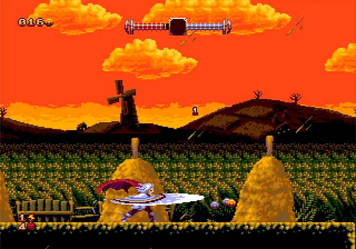 Разнообразия в игровом процессе тоже хватает: есть уровень, в котором вы будете летать и стрелять демонов, с видом сзади. Есть уровень с поездкой на вагонетке. Есть башня, вокруг которой надо бегать и подняться до самого верха (привет Battletoads и Mickey Mania). На некоторых уровнях вам предстоит вселяться в демонов-врагов и управлять ими (пауки, летучие мыши и др). А иногда даже придется управлять другими героями всей этой истории. Все эти мелочи делают и без того отличную игру еще более интересной.