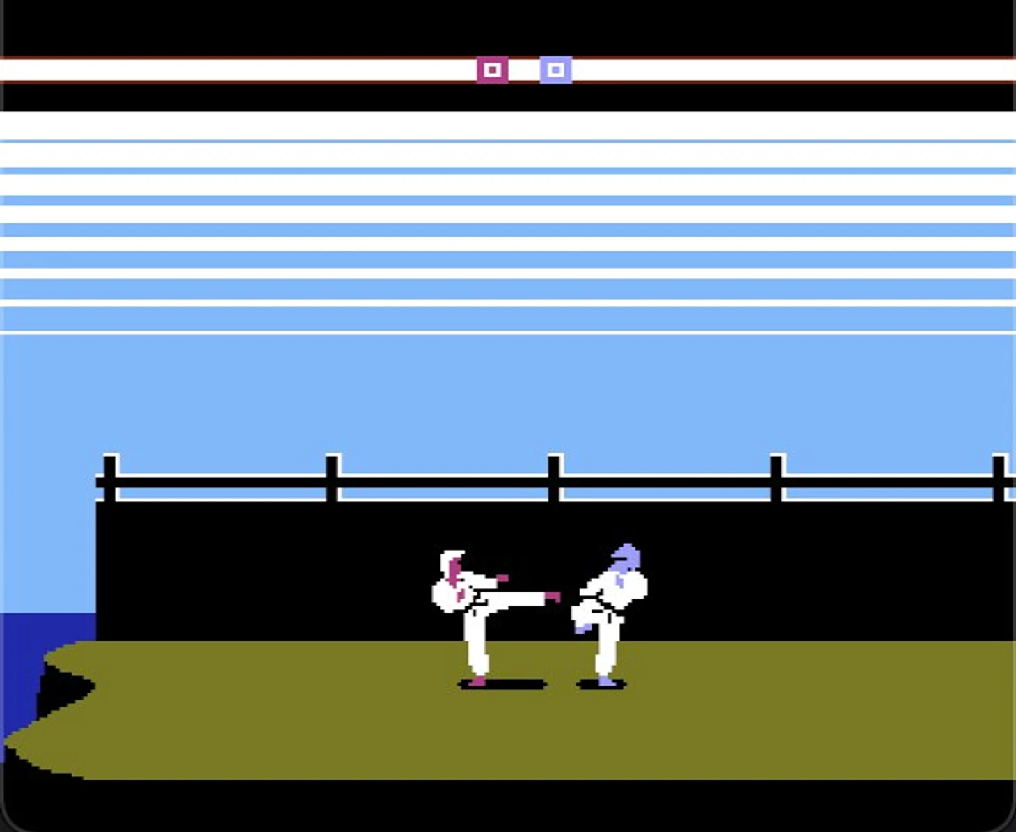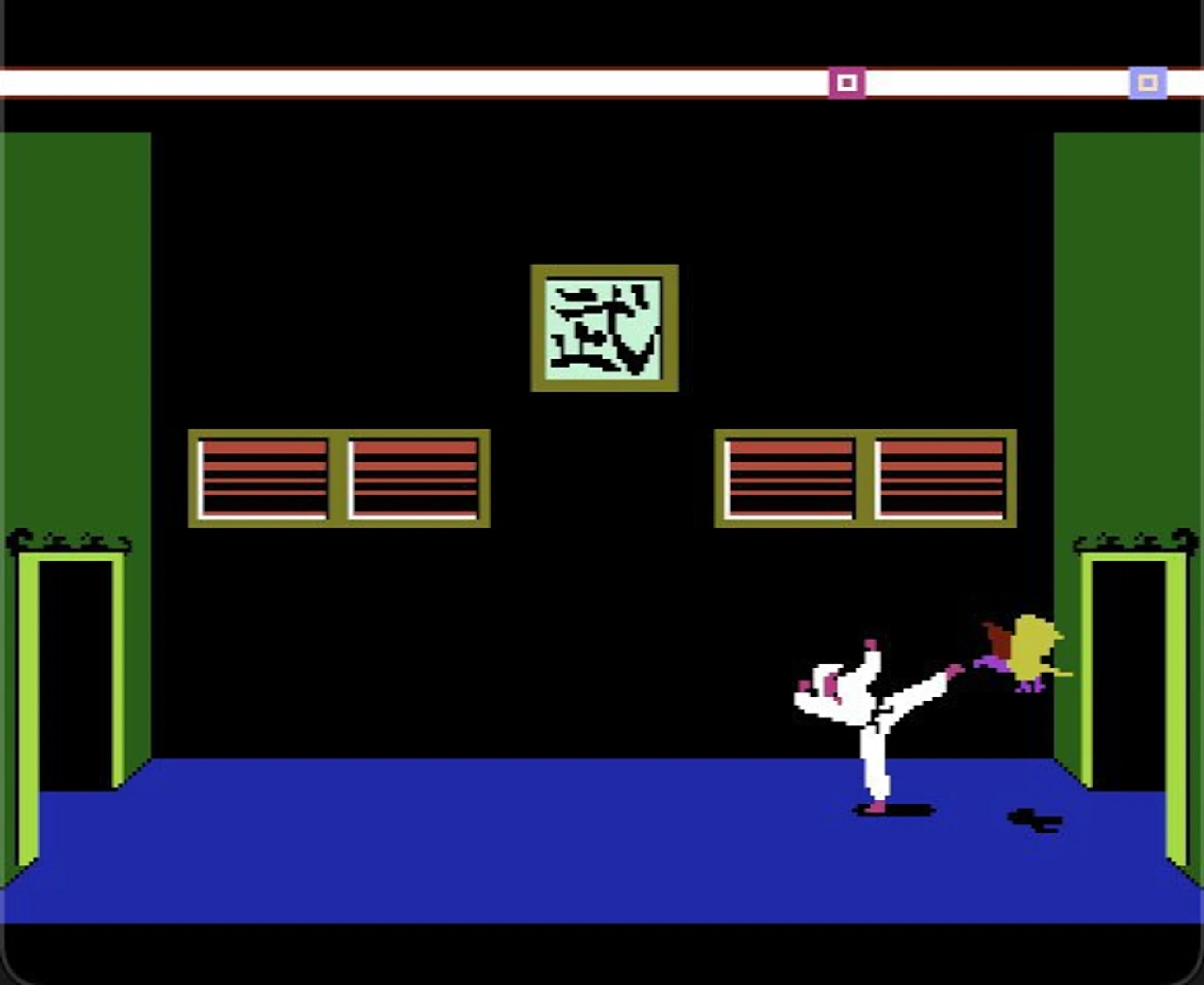 Каратека – одна из первых игр в жанре боевых искусств, наравне с Yie Ar Kung-Fu, и выходила в первые годы существования приставки, так что не может особо похвастаться сногсшибательной графикой и музыкой, тем не менее, это довольно-таки приятная и ламповая игрушка, в которую можно иногда зарубиться. Жаль только, что в нее не завезли режим поединка для двух игроков :)