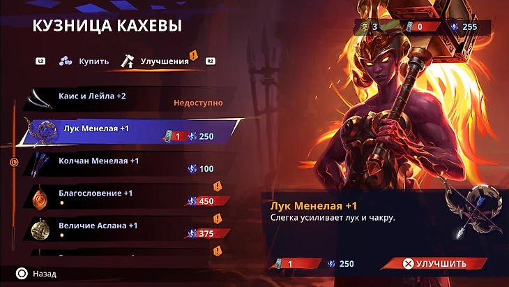 Первым делом вложите ресурсы в улучшение клинка, лука и лечебных зелий. Такая прокачка несоизмеримо полезней.